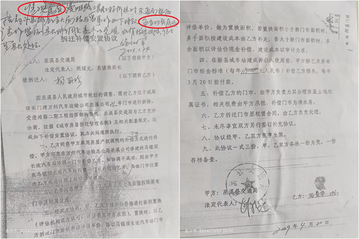 2009年初,因重庆市巫溪县政府建设漫滩路二期工程,需要对南门湾汽车站进行拆迁。接到拆迁通知后,我们两户(秦长碧、杨国珍)四个老人考虑到是城市建设的需要,应当支持政府工作,迅速在2009年3月15日与巫溪县政府的委托拆迁代理人县交通局签订了《拆迁安置协议》。协议签订后,我们多次找到相关部门要求按照协议条款解决补偿安置问题,但是得到的回复都是等一等,这一等,竟然等了14年还是没有等到,我们都80多岁且身体多病,想着在有生之年能够把这事圆满处理好,总不能给后人增添不必要的麻烦吧。老人家如是说。